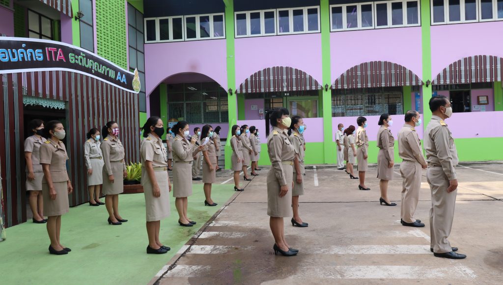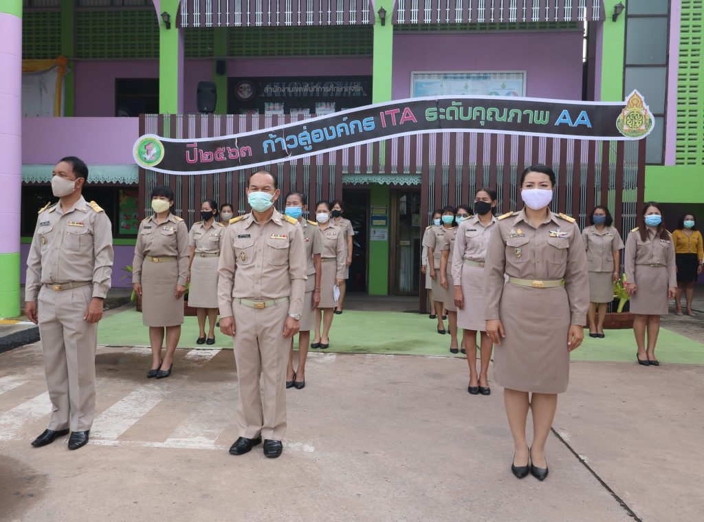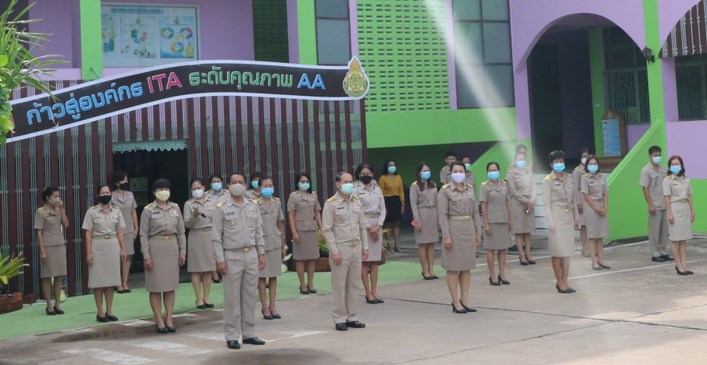 พร้อมด้วยบุคลากรกลุ่มอำนวยการร่วมกิจกรรมเข้าแถวเคารพธงชาติ