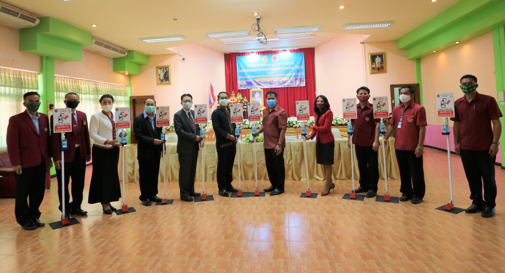 นางสาวกมลวรรณ ทิพยเนตร รองผอ.สพป.กาฬสินธุ์ เขต 1 และนายผจญ จันโทภาส ผอ.กลุ่มอำนวยการร่วมบันทึกข้อตกลงความร่วมมือ (MOU) การซ่อมบำรุงอุปกรณ์การจัดการเรียนรู้ทางไกลผ่านดาวเทียม DLTV ระหว่าง สพป.กาฬสินธุ์ เขต 1 กับ สำนักงานอาชีวศึกษาจังหวัดกาฬสินธุ์ พร้อมรับมอบที่กดเจลล้างมือแบบใช้เท้าเหยียบจากวิทยาลัยสารพัดช่างจังหวัดกาฬสินธุ์ ณ ห้องประชุมมูลนิธิถาวรจิตตถาวโร-วงศ์มาลัย วันที่ 27 พฤษภาคม 2563