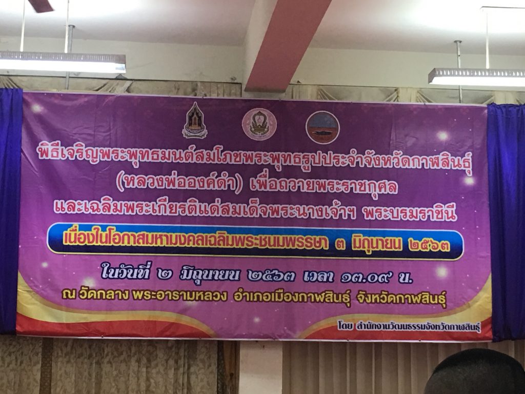 2 มิถุนายน 2563นายผจญ จันโทภาส ผู้อำนวยการกลุ่มอำนวยการ ได้รับมอบหมายจาก นายยงยุทธ พรหมแก้ว ผอ.สพป.กาฬสินธุ์ เขต 1 ร่วมพิธีเจริญพระพุทธมนต์สมโภชพระพุทธรูปสำคัญประจำจังหวัดกาฬสินธุ์ (หลวงพ่อองค์ดำ) เฉลิมพระเกียรติสมเด็จพระนางเจ้าฯพระบรมราชินี เนื่องในโอกาสมหามงคลเฉลิมพระชนมพรรษา 3 มิถุนายน 2563 ณ วัดกลางอารามหลวง อำเภอเมือง จังหวัดกาฬสินธุ์