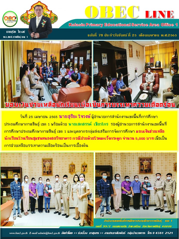จดหมายข่าวกลุ่ม ผอ.สพป.กาฬสินธุ์ เขต 1 มอบเงินช่วยเหลือนักเรียนโรงเรียนชุมชนหนองสอวิทยาคาร กรณีเจ็บป่วย 26 เมษายน 202226 เมษายน 2022 admin 0 Comments FacebookTwitterLine
