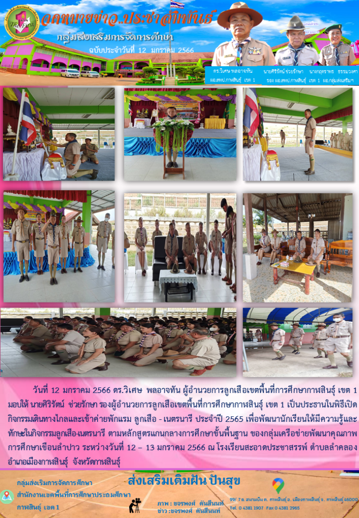 จดหมายข่าวกลุ่ม กิจกรรมเดินทางไกลและเข้าค่ายพักแรม ลูกเสือ – เนตรนารี ประจำปี 2565 ของกลุ่มเครือข่ายพัฒนาคุณภาพการศึกษาเขือนลำปาว 12 มกราคม 202312 มกราคม 2023 admin 0 Comments FacebookTwitterLine