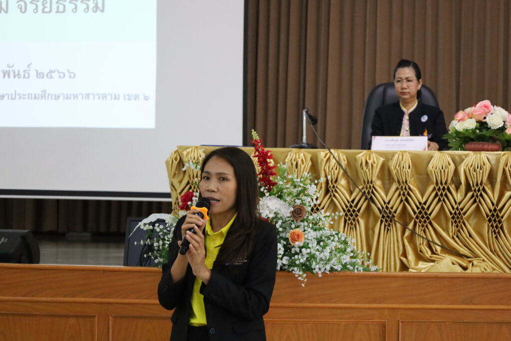 วันที่ 6 กุมภาพันธ์ 2566 ดร.วิเศษ พลอาจทัน ผอ.สพป.กาฬสินธุ์ เขต 1 มอบหมายให้ นางวชิรนุช พรหมภัทร์ รองผอ.สพป.กาฬสินธุ์ เขต 1 พร้อมด้วยคณะศึกษานิเทศก์ ปฏิบัติหน้าที่วิทยากรในการอบรมเชิงปฏิบัติการสร้างการรับรู้และการยอมรับการขับเคลื่อนสำนักงานเขตพื้นที่การศึกษาคุณธรรม (องค์กรคุณธรรม) เครือข่าย โดยมีวัตถุประสงค์เพื่อสร้างการรับรู้และยอมรับ จัดทำบัญชีพฤติกรรมที่ไม่พึงประสงค์และพฤติกรรมที่พึงประสงค์ กำหนดคุณธรรมหลัก แปลงคุณธรรมหลักเป็นแนวทางการปฏิบัติ และจัดทำกิจกรรมส่งเสริมความดี ณ หอประชุมปิยธัมโม รัฐประชาสามัคคี สพป.มหาสารคาม เขต 2