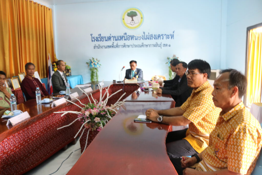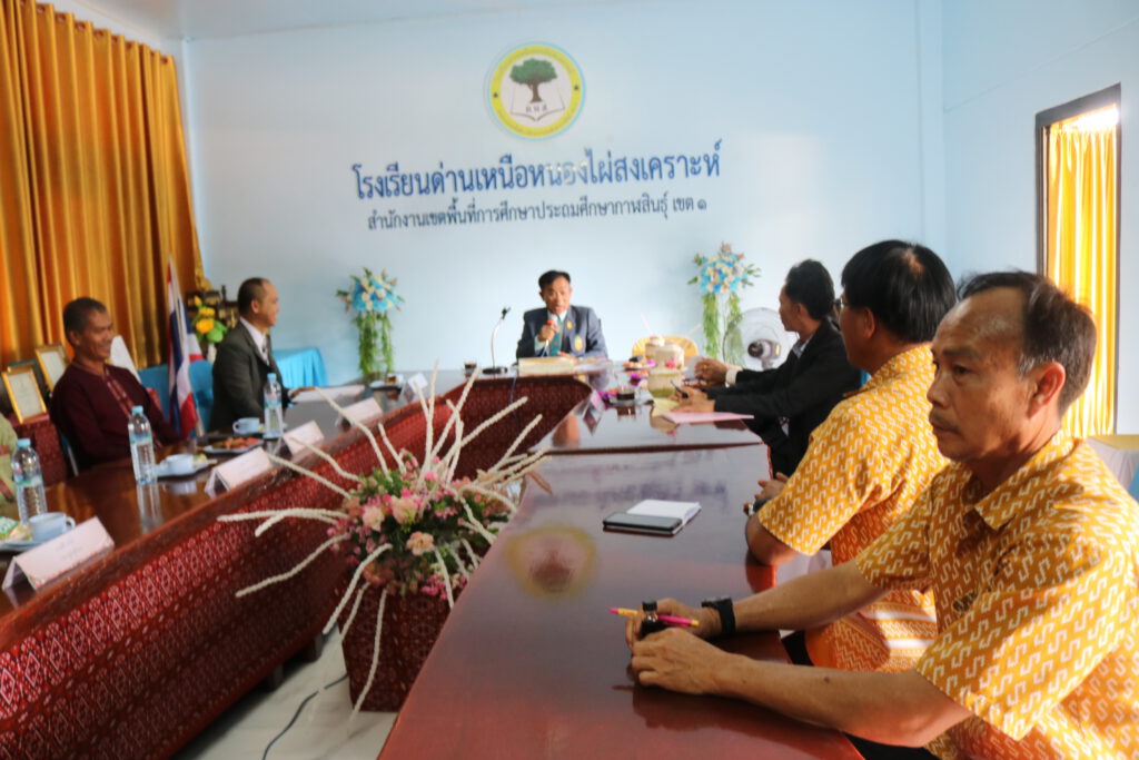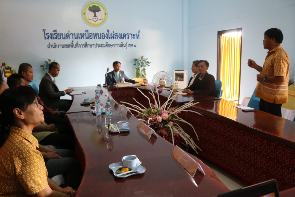 วันพฤหัสบดี ที่ 9 กุมภาพันธ์ 2566 ดร.วิเศษ พลอาจทัน ผู้อำนวยการสำนักงานเขตพื้นที่การศึกษาประถมศึกษากาฬสินธุ์ เขต 1 พร้อมด้วย นายจิตณรงค์ โคตรชมภู ผู้อำนวยการโรงเรียนชุมชนโพนงามประสาทศิลป์ และนายชุมพล ภูอ่อนศรี ผู้อำนวยการโรงเรียนพิพัฒน์ราษฎร์บำรุง คณะกรรมการประเมินข้าราชการและบุคลากรทางการศึกษาในการขอมีหรือเลื่อนวิทยฐานะ ชำนาญการพิเศษ (สายงานบริหารการศึกษา) ตำแหน่งผู้อำนวยการสถานศึกษา (ชำนาญการพิเศษ) นายชินกร โตกลาง ผู้อำนวยการโรงเรียนด่านเหนือหนองไผ่สงเคราะห์ ณ โรงเรียนด่านเหนือหนองไผ่สงเคราะห์ อำเภอกมลาไสย จังหวัดกาฬสินธุ์