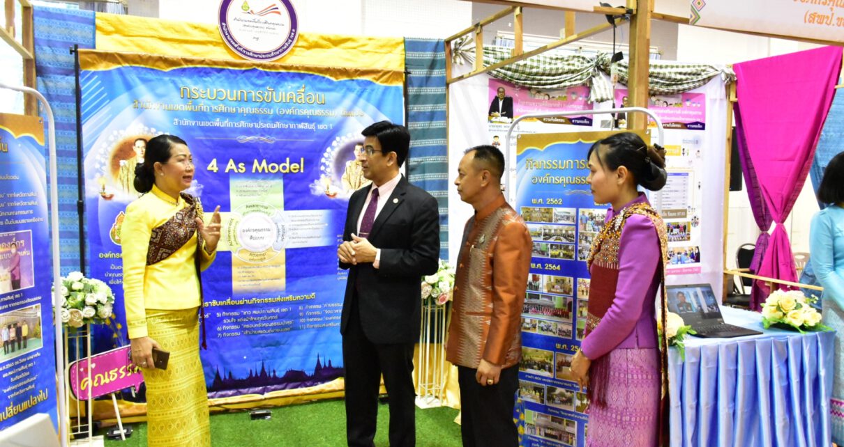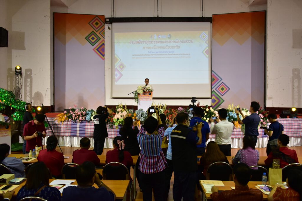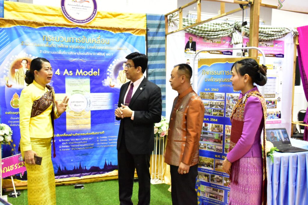 วันที่ 24 พฤษภาคม 2566 ดร.วิเศษ พลอาจทัน ผอ.สพป.กาฬสินธุ์ เขต 1 มอบหมายให้นางวชิรนุช พรหมภัทร์ รองผอ.สพป.กาฬสินธุ์ เขต 1 ศึกษานิเทศก์แกนนำคุณธรรมจิตอาสา และกลุ่มมดงาน ได้รับมอบหมายร่วมจัดนิทรรศการงานสมัชชาคุณธรรมและตลาดนัดคุณธรรม ภาคตะวันออกเฉียงเหนือ พร้อมนำเสนอการขับเคลื่อนโครงการสำนักงานเขตพื้นที่การศึกษาคุณธรรม (องค์กรคุณธรรม) ต้นแบบ ต่อรศ.นพ.สุริยเดล ทรีปาตี ผู้อำนวยการศูนย์คุณธรรม (องค์การมหาชน) และรับเกียรติบัตรหน่วยงานที่ร่วมจัดนิทรรศการจากท่านผู้ว่าราชการจังหวัดหนองคาย นายราชันย์ ซั้นหั้ว ณ หอประชุมประจักษศิลปาคม ศาลากลางจังหวัดหนองคาย
