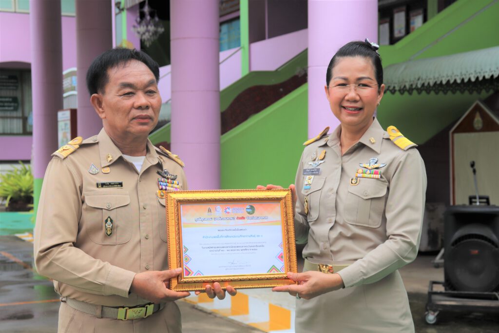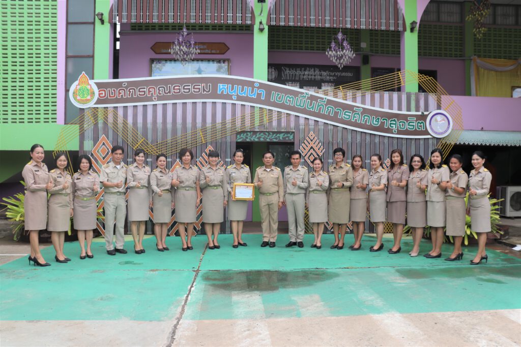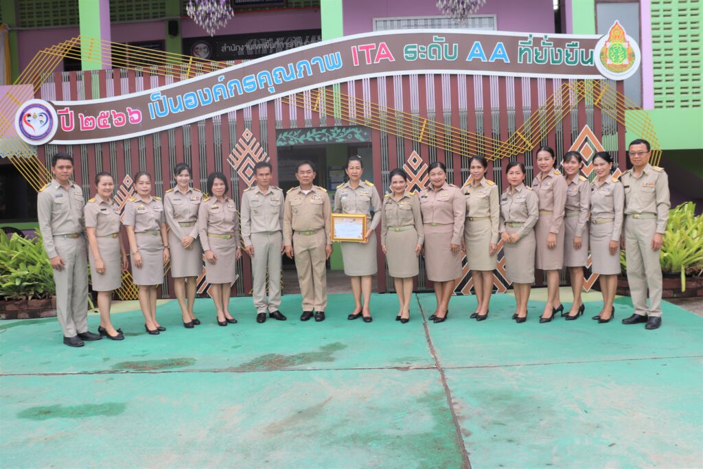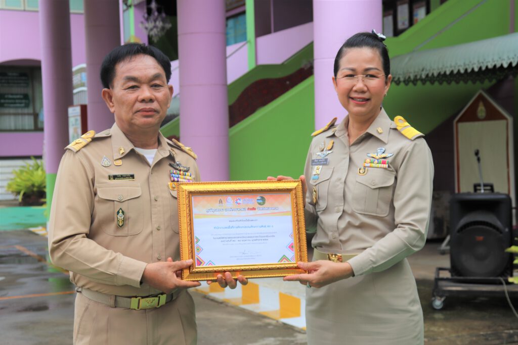 เวลา 08.15 น. วันที่ 29 พฤษภาคม 2566 ดร.วิเศษ พลอาจทัน ผู้อำนวยการสำนักงานเขตพื้นที่การศึกษาประถมศึกษากาฬสินธํุ์ เขต 1 นำบุคลากรเข้าแถวเคารพธงชาติ สวดมนต์ไหว้พระ และกล่าวคำปฏิญญาสำนักงานเขตพื้นที่การศึกษาสุจริต เสริมสร้างคุณธรรม จริยธรรม และธรรมาภิบาลสำนักงานเขตพื้นที่การศึกษาสุจริต หลังจากนั้นได้มอบเกียรติบัตรการเข้าร่วมสนับสนุนการจัดกิจกรรมการนำเสนอองค์ความรู้และกระบวนการส่งเสริมคุณธรรมขององค์กรในงานสมัชชาคุณธรรมและตลาดนัดคุณธรรมภาคตะวันออกเฉียงเหนือ ระหว่างวันที่ 23-24 พฤษภาคม 2566 จากสมัชาศูนย์คุณธรรม (องค์การมหาชน) ร่วมกับจังหวัดหนองคาย สนองนโยบาย สพฐ. ด้านคุณภาพ และด้านประสิทธิภาพ