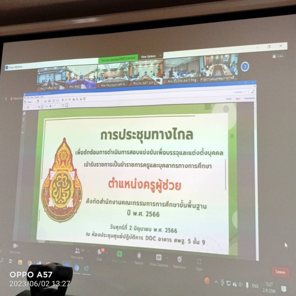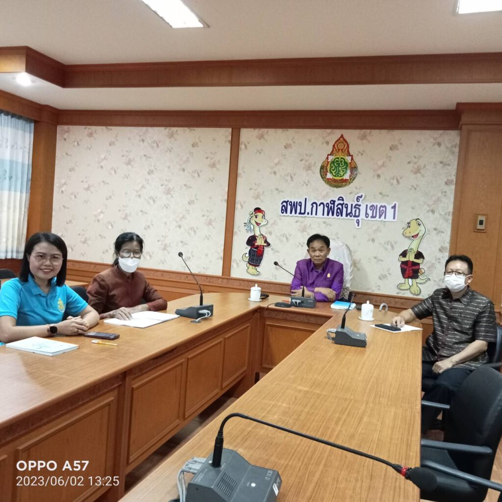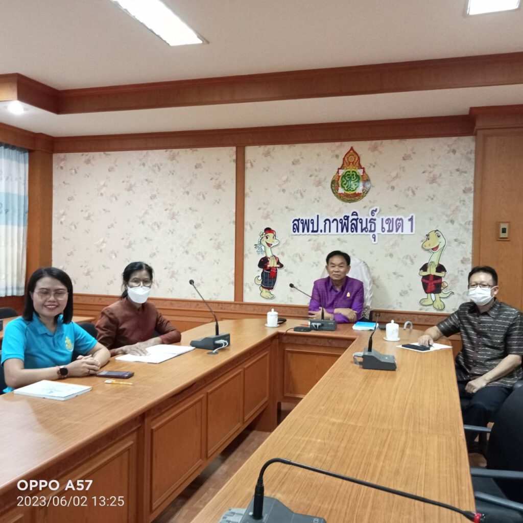 วันที่ 2 มิถุนายน 2566 เวลา 13.30 น. ดร.วิเศษ พลอาจทัน ผอ.สพป.กาฬสินธุ์ เขต 1 พร้อมด้วย นายสุรพงค์ พรมนาม รองผอ.สพป.กาฬสินธุ์ เขต 1 และบุคลากรที่เกี่ยวข้องร่วมประชุมทางไกลเพื่อซักซ้อมการดำเนินการสอบ แข่งขันเพื่อบรรจุและแต่งตั้งบุคคลเข้ารับราชการครูและบุคลากรทางการศึกษา ตำแหน่งครูผู้ช่วย สังกัด สพฐ. ปี พ.ศ.2566 ผ่านระบบ Video Conference ณ ห้องประชุมแพรวา สพป.กาฬสินธุ์ เขต 1