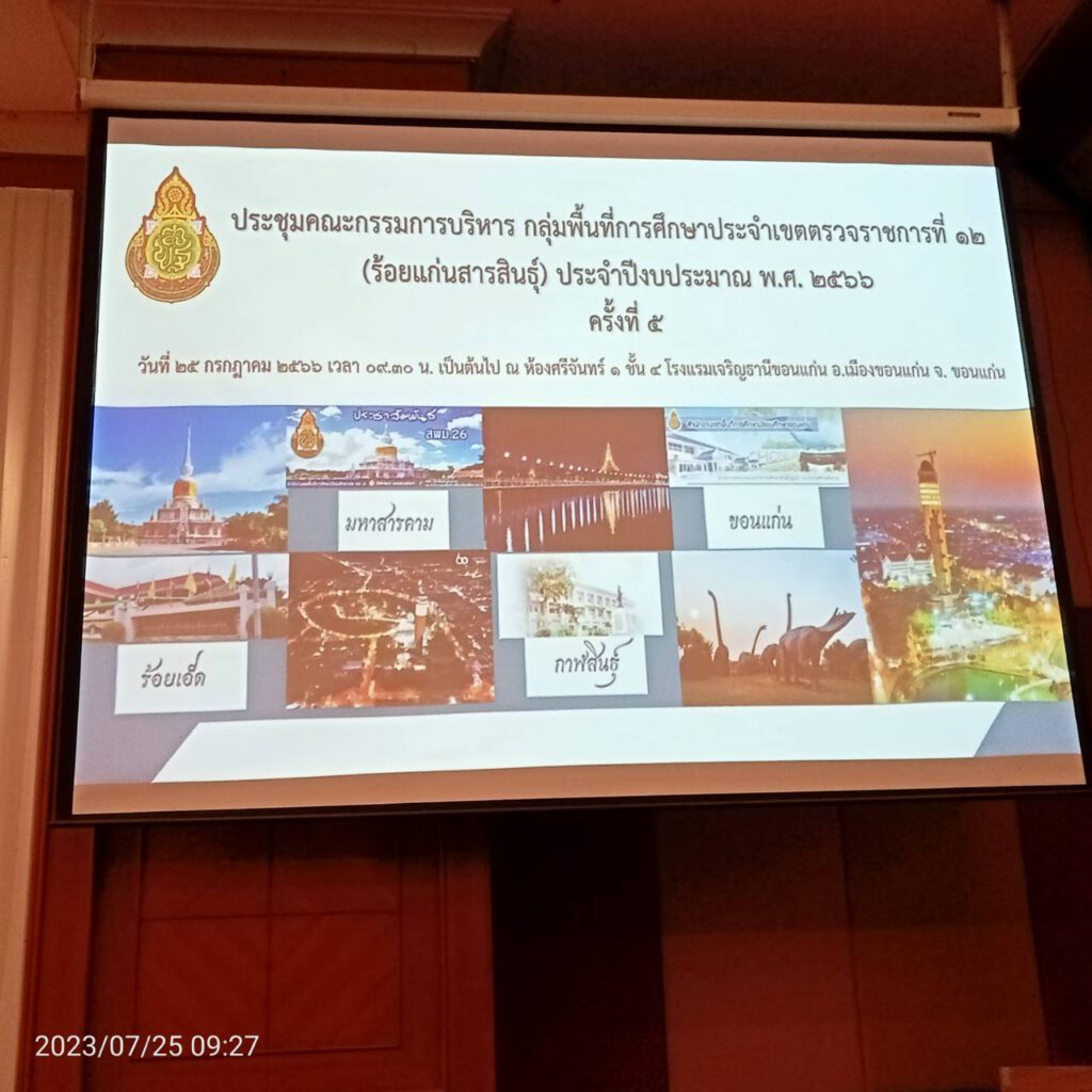 เวลา 09.00 น. วันที่ 25 กรกฎาคม 2566 ดร.วิเศษ พลอาจทัน ผอ.สพป.กาฬสินธุ์ เขต 1 พร้อมด้วยนายเสกสรรค์ เขียวไกร รอง ผอ.สพป.กาฬสินธุ์ เขต 1 ร่วมประชุมคณะกรรมการกลุ่มพื้นที่การศึกษา ประจำเขตตรวจราชการที่ 12 ครั้งที่ 5/2566 ณ โรงแรมเจริญธานี อำเภอเมือง จังหวัดขอนแก่น