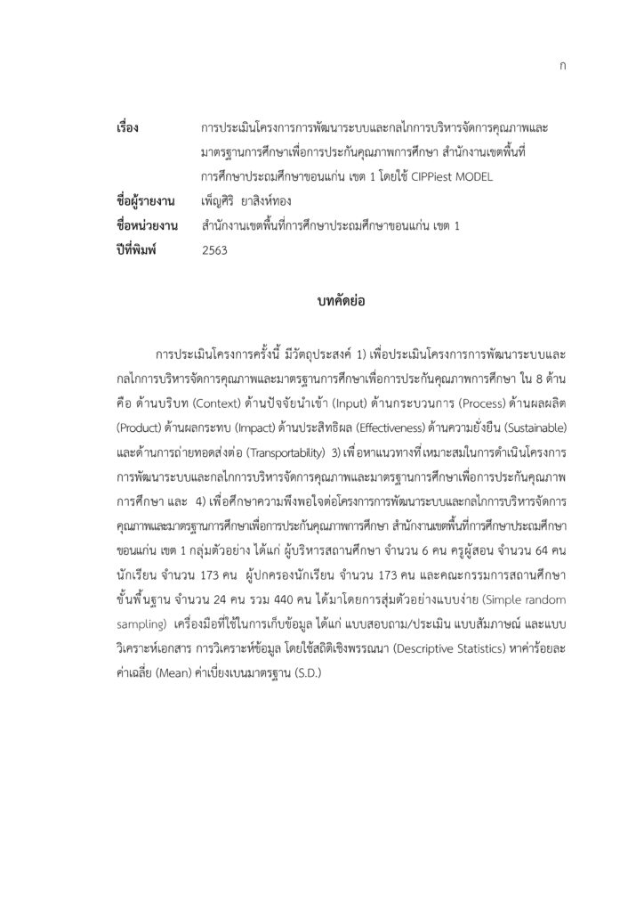 เผยแพร่ผลงานทางวิชาการ รายงานการประเมินโครงการการพัฒนาระบบและกลไกการบริหารจัดการคุณภาพและมาตรฐานการศึกษาเพื่อการประกันคุณภาพการศึกษา สำนักงานเขตพื้นที่การศึกษาประถมศึกษาขอนแก่น เขต 1 โดยใช้ CIPPiest MODEL Posted on 24 กรกฎาคม 20208 มกราคม 2024 Author admin ปิดความเห็น บน รายงานการประเมินโครงการการพัฒนาระบบและกลไกการบริหารจัดการคุณภาพและมาตรฐานการศึกษาเพื่อการประกันคุณภาพการศึกษา สำนักงานเขตพื้นที่การศึกษาประถมศึกษาขอนแก่น เขต 1 โดยใช้ CIPPiest MODEL Post Views: 58 FacebookFacebookXTwitterLINELine