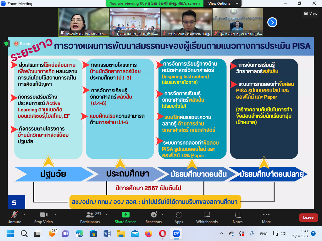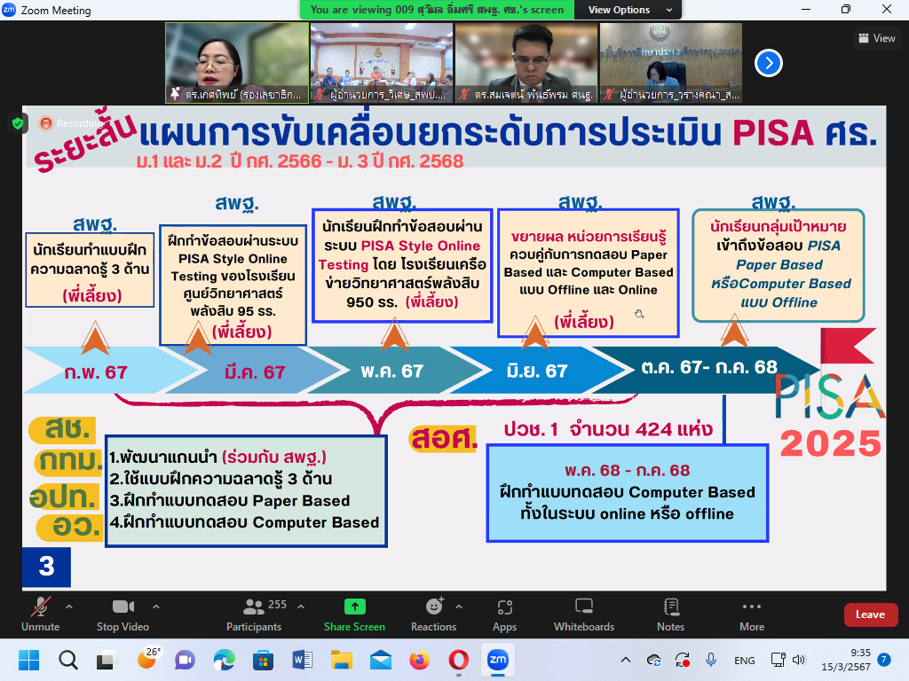 วันที่ 15 มีนาคม 2567 เวลา 09.00 น. ดร.วิเศษ พลอาจทัน ผู้อำนวยการสำนักงานเขตพื้นที่การศึกษาประถมศึกษากาฬสินธุ์ เขต 1 ร่วมประชุมขับเคลื่อนแผนการยกระดับผลการประเมินจากโปรแกรมประเมินสมรรถนะนักเรียนมาตรฐานสากล (PISA) กลุ่มผู้อำนวยการสำนักงานเขตพื้นที่การศึกษา ผ่านระบบอิเล็กทรอนิกส์ ณ ห้องประชุมแพรวา สำนักงานเขตพื้นที่การศึกษา ประถมศึกษากาฬสินธุ์ เขต 1