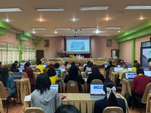 วันพฤหัสบดีที่ 11 กรกฎาคม 2567 ดร.วิเศษ พลอาจทัน ผู้อำนวยการสำนักงานเขตพื้นที่การศึกษาประถมศึกษากาฬสินธุ์ เขต 1 มอบหมายให้นายเสกสรรค์ เขียวไกร รองผู้อำนวยการสำนักงานเขตพื้นที่การศึกษาประถมศึกษากาฬสินธุ์ เขต 1 เป็นประธานในพิธีเปิดการอบรมเชิงปฏิบัติการ “การพัฒนาครูและบุคลากรทางการศึกษาให้เข้าถึงแพลตฟอร์มสื่อการเรียนรู้เพื่อการจัดการเรียนการสอน (การสร้าง e-book ด้วย Canva)” ณ ห้องประชุมมูลนิธิถาวรจิตตถาวโร-วงศ์มาลัย สพป.กาฬสินธุ์ เขต 1 มีครูและบุคลากรทางการศึกษาที่สนใจเข้ารับการอบรมจำนวนทั้งสิ้น 50 คน ซึ่งการอบรมเชิงปฏิบัติการในวันนี้มีวัตถุประสงค์ คือ 1. เพื่อพัฒนาครูและบุคลากรทางการศึกษาเกี่ยวกับการเข้าถึงแพลตฟอร์มสื่อการเรียนรู้เพื่อการจัดการเรียนการสอน 2. เพื่อนิเทศ กำกับ ติดตาม และส่งเสริม ให้ครูและบุคลากรทางการศึกษา ใช้งานแพลตฟอร์มสื่อการเรียนรู้เพื่อการจัดการเรียนการสอน 3. เพื่อส่งเสริมให้ครูมีวิธีการปฏิบัติที่เป็นเลิศ (Best Practice) ระดับกลุ่มเครือข่ายพัฒนาคุณภาพการศึกษาและระดับเขตพื้นที่การศึกษา ด้านการใช้แพลตฟอร์มสื่อการเรียนรู้เพื่อการจัดการเรียนการสอน โดยมีนางมธุรดา ศรีเครือดง ศึกษานิเทศก์ สพป.กาฬสินธุ์ เขต 1 เป็นผู้รับผิดชอบโครงการ สนองนโยบายระยะเร่งด่วน (Quick win) ของสำนักงานคณะกรรมการการศึกษาขั้นพื้นฐาน ประจำปีงบประมาณ พ.ศ. 2567 ด้านการลดภาระนักเรียนและผู้ปกครอง ข้อ 1 การเรียนรู้ทุกที่ทุกเวลา (Anywhere Anytime) ด้วยเทคโนโลยีดิจิทัล