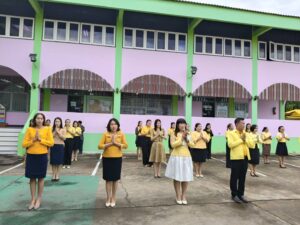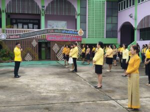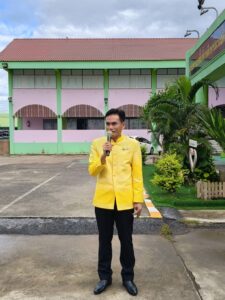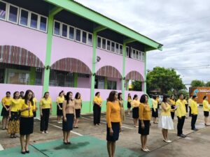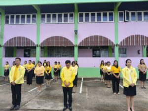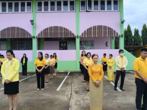 วันจันทร์ที่ 28 ตุลาคม 2567 เวลา 08.15 น. ว่าที่ร้อยตรี สุรสิทธิ์ ถิตย์สมบูรณ์ ผู้อำนวยการสำนักงานเขตพื้นที่การศึกษาประถมศึกษากาฬสินธุ์ เขต 1 มอบหมายให้ นายเสกสรรค์ เขียวไกร รองผู้อำนวยการสำนักงานเขตพื้นที่การศึกษาประถมศึกษากาฬสินธุ์ เขต 1 นำบุคลากรเข้าแถวเคารพธงชาติ สวดมนต์ไหว้พระ และกล่าวคำปฏิญญาสำนักงานเขตพื้นที่การศึกษาสุจริต สนองนโยบายระยะเร่งด่วน (Quick Win) ประจำปีงบประมาณ พ.ศ. 2567-2568 ด้านการลดภาระครูและบุคลากรทางการศึกษา