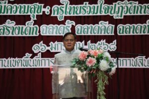 วันพฤหัสบดีที่ 16 มกราคม 2568 เวลา 07.30 น. ว่าที่ร้อยตรี สุรสิทธิ์ ถิตย์สมบูรณ์ ผู้อำนวยการสำนักงานเขตพื้นที่การศึกษาประถมศึกษากาฬสินธุ์ เขต 1 กล่าวรายงานการดำเนิน