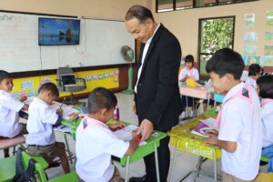 วันพุธที่ 26 กุมภาพันธ์ 2568 เวลา 10.30 น. ว่าที่ร้อยตรี สุรสิทธิ์ ถิตย์สมบูรณ์ ผู้อำนวยการสำนักงานเขตพื้นที่การศึกษาประถมศึกษากาฬสินธุ์ เขต 1 พร้อมด้วย ดร.เพ็ญประภา กั้วพิทักษ์ ศึกษานิเทศก์ คณะตรวจเยี่ยมสนามสอบฯ การประเมินคุณภาพผู้เรียน (NT) ชั้นประถมศึกษาปีที่ 3 ปีการศึกษา 2567 ตามคำสั่ง สำนักงานเขตพื้นที่การศึกษาประถมศึกษากาฬสินธุ์ เขต 1 ที่ 84/2567 ลงวันที่ 20 กุมภาพันธ์ 2567 ลงพื้นที่กำกับ ติดตาม และตรวจเยี่ยม การดำเนิน การประเมินคุณภาพผู้เรียน (NT) ปีการศึกษา 2567 ของคณะกรรมการระดับสนามสอบที่โรงเรียนนามลวิทยาคาร กลุ่มเครือข่ายพัฒนาคุณภาพการศึกษากมลาไสย อำเภอกมลาไสย จังหวัดกาฬสินธุ์ พบว่าการดำเนินการของสนามสอบเป็นไปตามแนวปฏิบัติการจัดสอบและมาตรฐานการประเมิน และตรวจเยี่ยมชั้นเรียนเพื่อติดตามนโยบายเดินหน้าและพัฒนาการอ่านออกเขียนได้ และติดตามเรื่องสุขภาพกายและสุขภาพจิตของนักเรียน