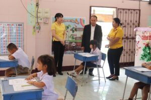 วันพุธที่ 26 กุมภาพันธ์ 2568 เวลา 11.00 น. ว่าที่ร้อยตรี สุรสิทธิ์ ถิตย์สมบูรณ์ ผู้อำนวยการสำนักงานเขตพื้นที่การศึกษาประถมศึกษากาฬสินธุ์ เขต 1 พร้อมด้วย ดร.เพ็ญประภา กั้วพิทักษ์ ศึกษานิเทศก์ คณะตรวจเยี่ยมสนามสอบฯ การประเมินคุณภาพผู้เรียน (NT) ชั้นประถมศึกษาปีที่ 3 ปีการศึกษา 2567 ตามคำสั่ง สำนักงานเขตพื้นที่การศึกษาประถมศึกษากาฬสินธุ์ เขต 1 ที่ 84/2567 ลงวันที่ 20 กุมภาพันธ์ 2567 ลงพื้นที่กำกับ ติดตาม และตรวจเยี่ยม การดำเนิน การประเมินคุณภาพผู้เรียน (NT) ปีการศึกษา 2567 ของคณะกรรมการระดับสนามสอบที่โรงเรียนคำโพนทองราษฎร์นิยม กลุ่มเครือข่ายพัฒนาคุณภาพการศึกษากมลาไสย อำเภอกมลาไสย จังหวัดกาฬสินธุ์ พบว่าการดำเนินการของสนามสอบเป็นไปตามแนวปฏิบัติการจัดสอบและมาตรฐานการประเมิน