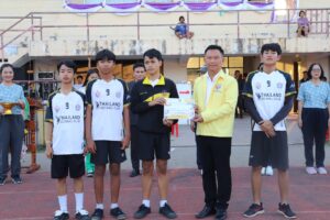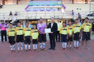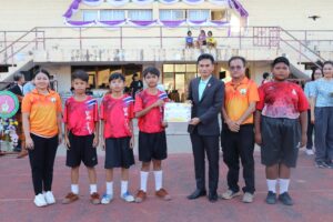 วันศุกร์ที่ 28 กุมภาพันธ์ 2568 เวลา 16.30 น. ว่าที่ร้อยตรี สุรสิทธิ์ ถิตย์สมบูรณ์ ผู้อำนวยการสำนักงานเขตพื้นที่การศึกษาประถมศึกษากาฬสินธุ์ เขต 1 เป็นประธานปิดการแข่งขันกีฬานักเรียน ระดับเขตพื้นที่การศึกษา ประจำปี 2568 ซึ่งกำหนดจัดขึ้นในระหว่างวันที่ 26-28 กุมภาพันธ์ 2568 นอกจากนี้ ว่าที่ร้อยตรี สุรสิทธิ์ ถิตย์สมบูรณ์ ผู้อำนวยการสำนักงานเขตพื้นที่การศึกษาประถมศึกษากาฬสินธุ์ เขต 1 พร้อมด้วย นายเสกสรรค์ เขียวไกร และ ดร.นุกูล ทรงมงคลรัตน์ รองผู้อำนวยการสำนักงานเขตพื้นที่การศึกษาประถมศึกษากาฬสินธุ์ เขต 1 มอบเกียรติบัตรให้กับนักกีฬาที่ได้รับรางวัลชนะเลิศและรองชนะเลิศ ทั้ง 5 ชนิดกีฬา ได้แก่ กีฬาฟุตบอล กีฬาวอลเลย์บอล กีฬาเซปักตะกร้อ กีฬาเปตอง และกีฬาฟุตซอล ณ สนามกีฬากลางจังหวัดกาฬสินธุ์ อำเภอเมืองกาฬสินธุ์ จังหวัดกาฬสินธุ์