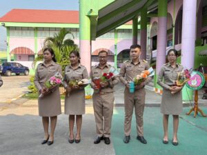 วันจันทร์ที่ 3 มีนาคม 2568 เวลา 08.15 น. ว่าที่ร้อยตรี สุรสิทธิ์ ถิตย์สมบูรณ์ ผู้อำนวยการสำนักงานเขตพื้นที่การศึกษาประถมศึกษากาฬสินธุ์ เขต 1 นำบุคลากรเข้าแถวเคารพธงชาติ สวดมนต์ไหว้พระ และกล่าวคำปฏิญญาสำนักงานเขตพื้นที่การศึกษาสุจริต สนองนโยบายระยะเร่งด่วน (Quick Win) ประจำปีงบประมาณ พ.ศ. 2568-2569 ด้านการลดภาระครูและบุคลากรทางการศึกษา ข้อ 5 สร้างความตระหนักในการป้องกันการทุจริต และมอบเกียรติบัตรให้กับบุคลากรผู้ผ่านการอบรมการขยายผลและสร้างข้อสอบวัดความฉลาดรู้ ประเภท ผู้บริหารและครูกลุ่มสาระอื่น ๆ รูปแบบ ON DEMAND “เรียนได้ทุกที่ ทุกเวลา” รุ่นที่ 1 ระหว่างวันที่ 24 – 30 พฤศจิกายน 2567 จำนวน 12 ชั่วโมง มอบแก้วน้ำเป็นของที่ระลึกให้บุคลากร เนื่องในโอกาสวันคล้ายวันเกิด และกล่าวต้อนรับบุคลากรใหม่