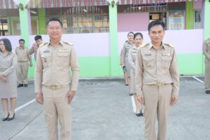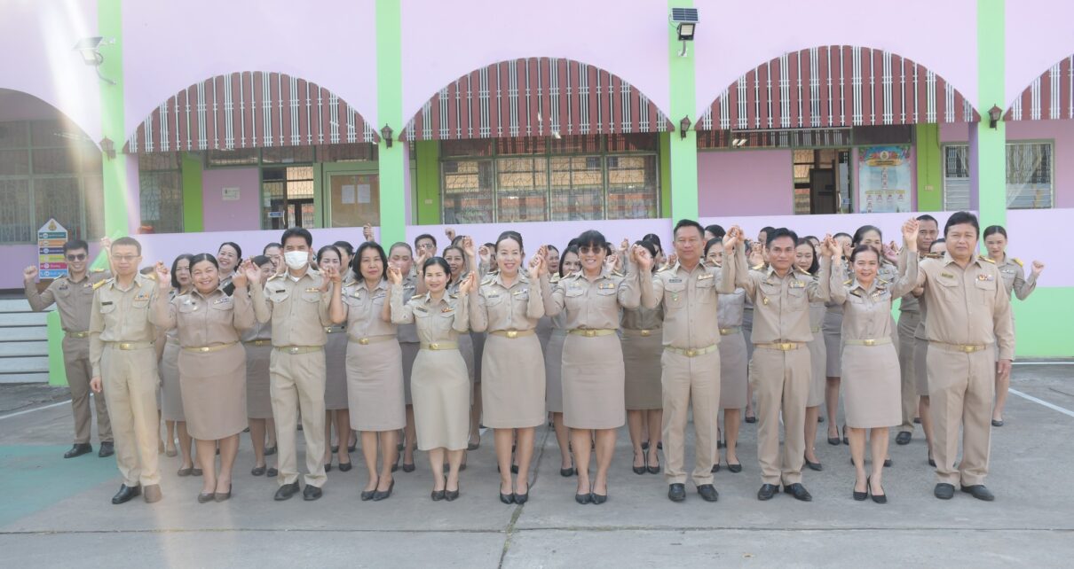 วันจันทร์ที่ 10 มีนาคม 2568 เวลา 08.15 น. ว่าที่ร้อยตรี สุรสิทธิ์ ถิตย์สมบูรณ์ ผู้อำนวยการสำนักงานเขตพื้นที่การศึกษาประถมศึกษากาฬสินธุ์ เขต 1 มอบหมายให้ นายเสกสรรค์ เขียวไกร รองผู้อำนวยการสำนักงานเขตพื้นที่การศึกษาประถมศึกษากาฬสินธุ์ เขต 1 นำบุคลากรเข้าแถวเคารพธงชาติ สวดมนต์ไหว้พระ และกล่าวคำปฏิญญาสำนักงานเขตพื้นที่การศึกษาสุจริต สนองนโยบายระยะเร่งด่วน (Quick Win) ประจำปีงบประมาณ พ.ศ. 256 – 2569 ด้านการลดภาระครูและบุคลากรทางการศึกษา ข้อ 5 สร้างความตระหนักในการป้องกันการทุจริต