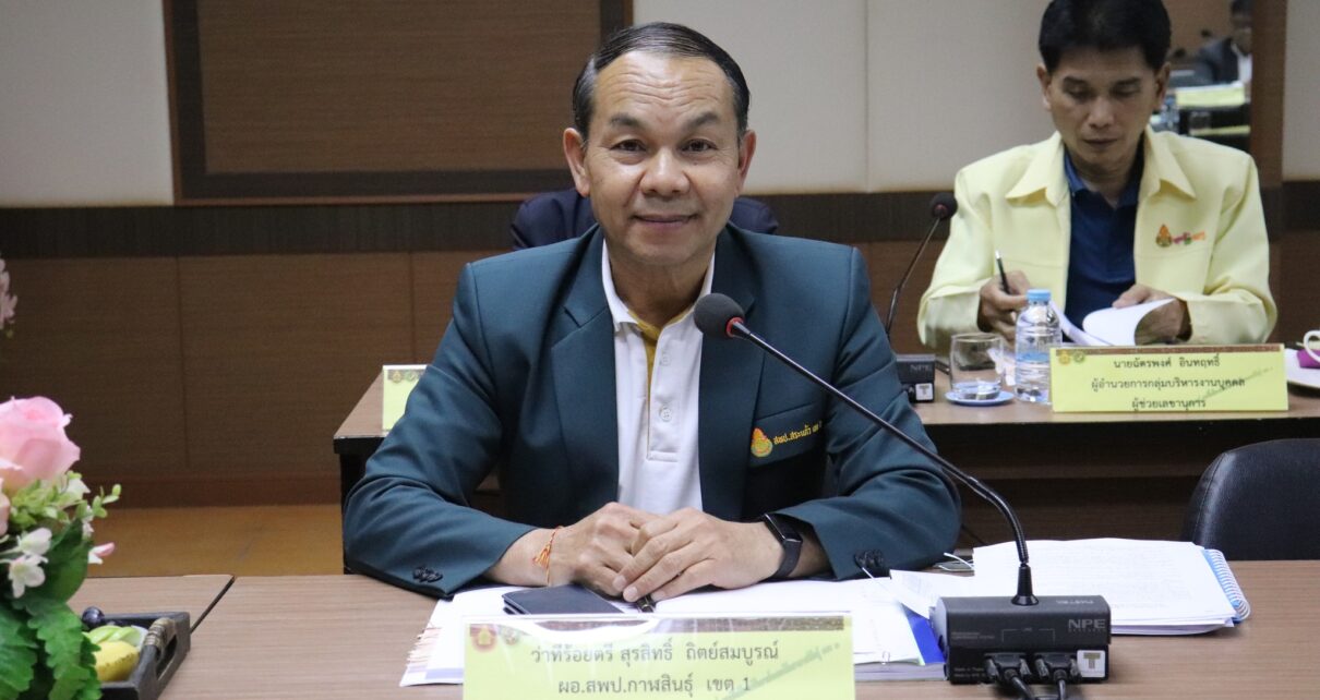 วันพุธที่ 12 มีนาคม 2568 เวลา 13.30 น. ว่าที่ร้อยตรี สุรสิทธิ์ ถิตย์สมบูรณ์ ผู้อำนวยการสำนักงานเขตพื้นที่การศึกษาประถมศึกษากาฬสินธุ์ เขต 1 พร้อมด้วย นายเสกสรรค์ เขียวไกร รองผู้อำนวยการสำนักงานเขตพื้นที่การศึกษาประถมศึกษากาฬสินธุ์ เขต 1 นายฉัตรพงศ์ อินทฤทธิ์ ผู้อำนวยการกลุ่มบริหารงานบุคคล และบุคลากร เข้าร่วมประชุมคณะกรรมการ อ.ก.ค.ศ.เขตพื้นที่การศึกษาประถมศึกษากาฬสินธุ์ เขต 1 ครั้งที่ 3/2568 โดยมีผู้ช่วยศาสตราจารย์คมสันทิ์ ขจรปัญญาไพศาล ประธาน อ.ก.ค.ศ.เขตพื้นที่การศึกษาประถมศึกษากาฬสินธุ์ เขต 1 เป็นประธานการประชุมในครั้งนี้ และมอบดอกไม้แสดงความยินดีกับ นายอดิศร วิทูรศิลป์ นายอำเภอเมืองกาฬสินธุ์ ณ ห้องประชุมโปง สำนักงานเขตพื้นที่การศึกษาประถมศึกษากาฬสินธุ์ เขต 1