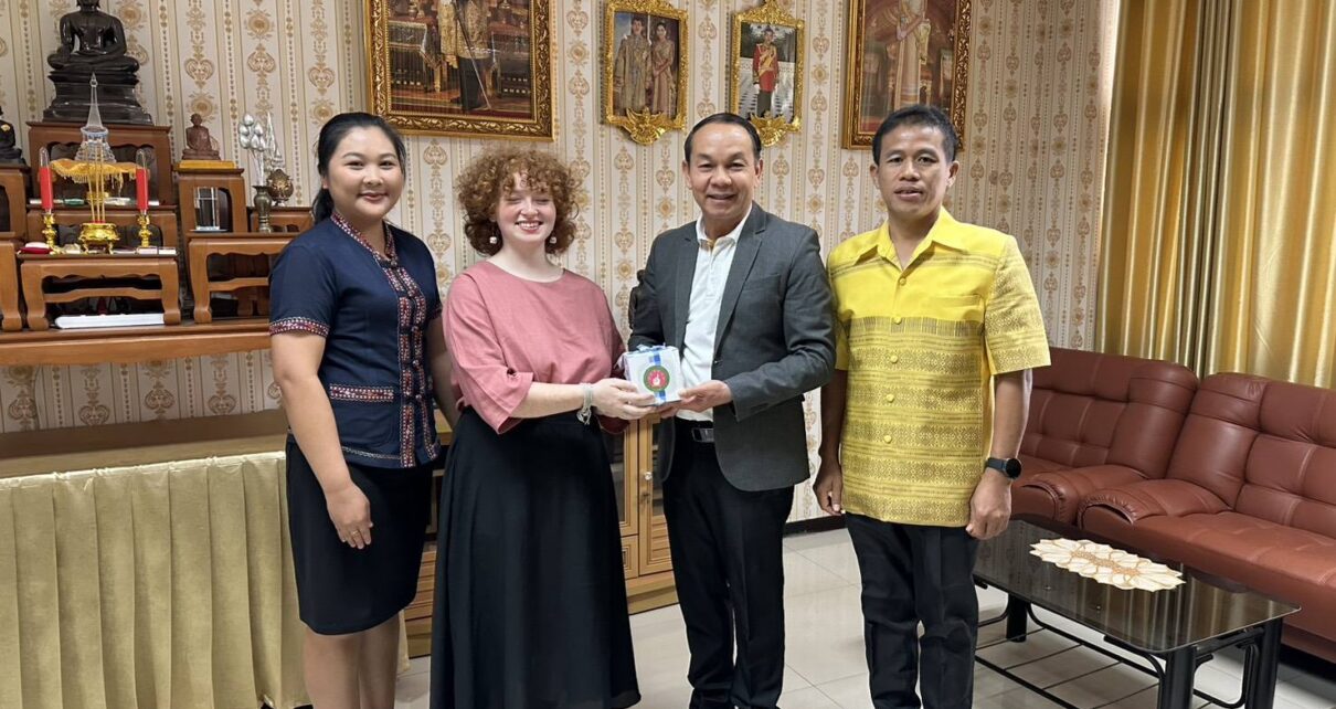 วันศุกร์ที่ 21 มีนาคม 2568 เวลา 09.00 น. ว่าที่ร้อยตรีสุรสิทธิ์ ถิตย์สมบูรณ์ ผู้อำนวยการสำนักงานเขตพื้นที่การศึกษาประถมศึกษากาฬสินธุ์ เขต 1 ได้มอบแก้วคุณสุข และได้กล่าวให้กำลังใจและขอให้มีความสุขกับการปฏิบัติงานแก่นายทวีชัย ประสีระตา ผู้อำนวยการโรงเรียนบ้านโหมนสงเคราะห์ และคุณครูชาวต่างชาติ จากประเทศสหรัฐอเมริกา โครงการเพื่อนครูอาสาเพื่อพัฒนา