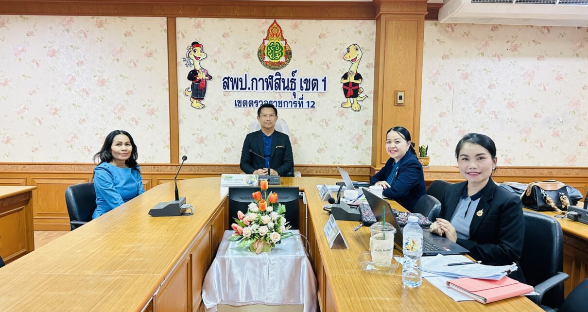 วันพฤหัสบดีที่ 27 มีนาคม 2568 ว่าที่ร้อยตรี สุรสิทธิ์ ถิตย์สมบูรณ์ ผู้อำนวยการสำนักงานเขตพื้นที่การศึกษาประถมศึกษากาฬสินธุ์ เขต 1 มอบหมายให้ ดร.นุกูล ทรงมงคลรัตน์ รองผู้อำนวยการสำนักงานเขตพื้นที่การศึกษาประถมศึกษากาฬสินธุ์ เขต 1 ดร.พรเพ็ญ ฤทธิลัน ผู้อำนวยการกลุ่มนิเทศ ติดตามและประเมินผลการจัดการศึกษา นางมธุรดา ศรีเครือดง ศึกษานิเทศก์ นางสาวนันทพร ภูครองนาค ศึกษานิเทศก์ นางกัญญาภัทร นาชัยนาค นักวิชาการคอมพิวเตอร์ ที่รับผิดชอบและเกี่ยวข้องกับการพัฒนาและส่งเสริมการจัดการเรียนรู้ด้วยสื่อเทคโนโลยีดิจิทัล ระดับการศึกษาขั้นพื้นฐาน (OBEC Center) เข้าร่วมประชุมทางไกล (Zoom Meeting) ในการพัฒนา ให้ความรู้ สร้างความเข้าใจกับศึกษานิเทศก์และบุคลากรทางการศึกษาที่รับผิดชอบและเกี่ยวข้องกับการพัฒนาและส่งเสริมการจัดการเรียนรู้ด้วยสื่อเทคโนโลยีดิจิทัล ระดับการศึกษาขั้นพื้นฐาน ระหว่างเวลา 07.30 – 17.00 น. ณ ห้องประชุมแพรวา สำนักงานเขตพื้นที่การศึกษาประถมศึกษากาฬสินธุ์ เขต 1