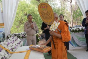 วันจันทร์ ที่ 21 เมษายน 2568 เวลา 15.00 น. ว่าที่ร้อยตรี สุรสิทธิ์ ถิตย์สมบูรณ์ ผู้อำนวยการสำนักงานเขตพื้นที่การศึกษาประถมศึกษากาฬสินธุ์ เขต 1 เป็นประธานพิธีฌาปนกิจศพ คุณตาบุญส่ง บุตรดอน บิดานางปาณิสรา แลโสภา ผู้อำนวยการโรงเรียนสะอาดไชยศรี กลุ่มเครือข่ายพัฒนาคุณภาพการศึกษาดอนจาน ณ วัดป่าอัมพวัน ตำบลม่วงนา อำเภอดอนจาน จังหวัดกาฬสินธุ์ โดยมีนายเสกสรรค์ เขียวไกร นางวชิรนุช พรหมภัทร์ และดร.นุกูล ทรงมงคลรัตน์ รองผู้อำนวยการสำนักงานเขตพื้นที่การศึกษาประถมศึกษากาฬสินธุ์ เขต 1 ร่วมงานในครั้งนี้ด้วย