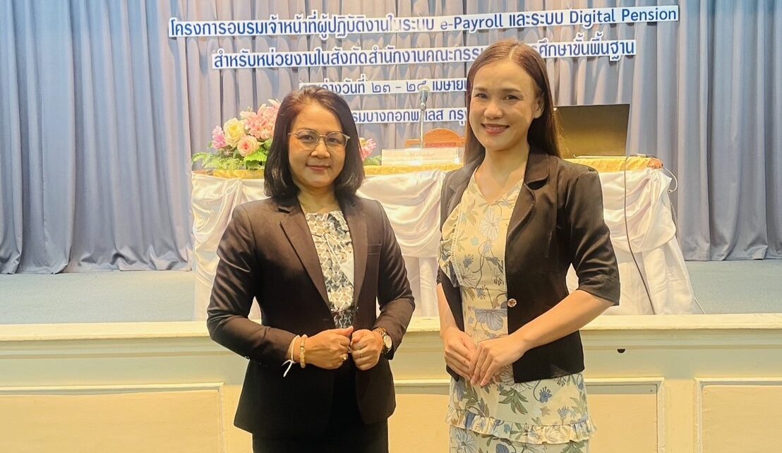 ระหว่างวันที่ 23-25 เมษายน 2568 ว่าที่ร้อยตรี สุรสิทธิ์ ถิตย์สมบูรณ์ ผู้อำนวยการสำนักงานเขตพื้นที่การศึกษาประถมศึกษากาฬสินธุ์ เขต 1 มอบหมายให้ นางสาวกชวรรณ ศรีบานชื่น นักวิชาการเงินและบัญชีชำนาญการพิเศษและนางสาวเฌอลินญ์ เลิศศรัญรัตน์ นักทรัพยากรบุคคลชำนาญการ เข้าร่วมโครงการอบรมเจ้าหน้าที่ผู้ปฏิบัติงานในระบบ E-payroll และระบบ Digital pension สำหรับสังกัดสำนักงานคณะกรรมการการศึกษาขั้นพื้นฐาน ณ โรงแรมบางกอกพาเลส กรุงเทพมหานคร