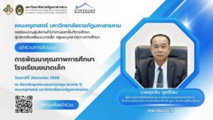 วันเสาร์ที่ 26 เมษายน 2568 เวลา 09.00 น. ว่าที่ร้อยตรี สุรสิทธิ์ ถิตย์สมบูรณ์ ผู้อำนวยการสำนักงานเขตพื้นที่การศึกษาประถมศึกษากาฬสินธุ์ เขต 1 พร้อมด้วย นายเสกสรรค์ เขียวไกร รองผู้อำนวยการสำนักงานเขตพื้นที่การศึกษาประถมศึกษากาฬสินธุ์ เขต 1 นางสาวลัดดาวัลย์ จำเริญพัฒน์ นักวิเคราะห์นโยบายและแผน และผู้บริหารโรงเรียนในสังกัด เข้าร่วมสัมมนาการพัฒนาคุณภาพการศึกษาโรงเรียนขนาดเล็ก ณ ห้องประชุมพระบรมพระธาตุนาดูน (อาคาร 1) คณะครุศาสตร์ มหาวิทยาลัยราชภัฏมหาสารคาม อำเภอเมืองสารคาม จังหวัดมหาสารคาม ซึ่งได้รับเกียรติจาก ดร.ศุภสิน ภูศรีโสม ผู้อำนวยการสำนักพัฒนาระบบบริหารงานบุคคลและนิติการ สำนักงานคณะกรรมการการศึกษาขั้นพื้นฐาน เป็นประธานในพิธี