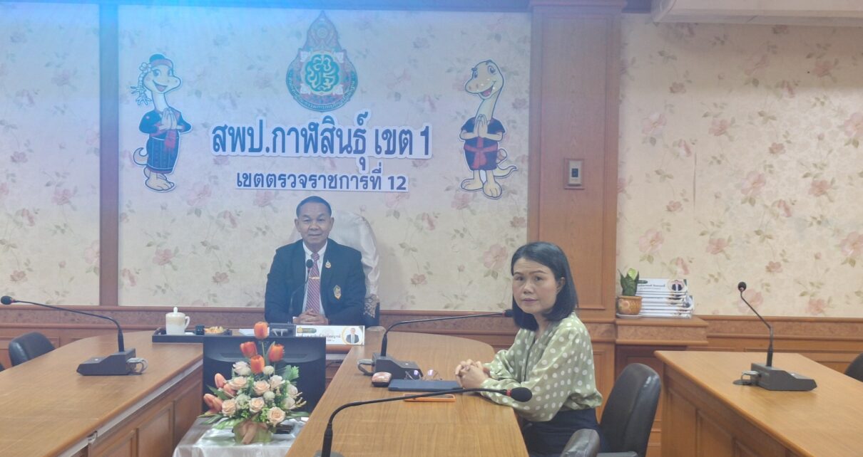 วันอังคารที่ 29 เมษายน 2568 เวลา 08.30 น. ว่าที่ร้อยตรี สุรสิทธิ์ ถิตย์สมบูรณ์ ผู้อำนวยการสำนักงานเขตพื้นที่การศึกษาประถมศึกษากาฬสินธุ์ เขต 1 ปฏิบัติหน้าที่ผู้อำนวยการเขตตรวจราชการที่ 12 พร้อมด้วยนางอาทิตยา นาถาดทอง นักทรัพยากรบุคคลชำนาญการ เข้าร่วมการประชุมผู้บริหารระดับสูงของสำนักงานคณะกรรมการการศึกษาขั้นพื้นฐาน (สพฐ.) ครั้งที่ 16/2568 ผ่านสื่ออิเล็กทรอนิกส์โปรแกรม Zoom Meeting เพื่อรับฟังรายงานผลการขับเคลื่อนนโยบาย สพฐ. ณ ห้องประชุมแพรวา สำนักงานเขตพื้นที่การศึกษาประถมศึกษากาฬสินธุ์ เขต 1 โดยมี ดร.ภูธร จันทะหงษ์ ปุณยจรัสธำรง ผู้ช่วยเลขาธิการคณะกรรมการการศึกษาขั้นพื้นฐาน เป็นประธานการประชุม