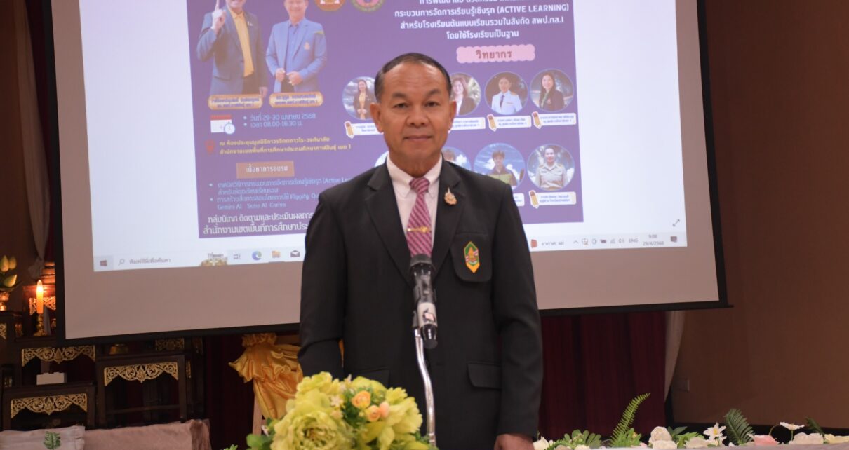 วันอังคารที่ 29 เมษายน 2568 เวลา 09.00 น. ว่าที่ร้อยตรี สุรสิทธิ์ ถิตย์สมบูรณ์ ผู้อำนวยการสำนักงานเขตพื้นที่การศึกษาประถมศึกษากาฬสินธุ์ เขต 1 เป็นประธานการประชุมการอบรมเชิงปฏิบัติการพัฒนาสื่อ นวัตกรรม เทคนิควิธีการกระบวนการจัดการเรียนรู้เชิงรุก (Active Learning) สำหรับโรงเรียนต้นแบบเรียนรวมในสังกัด โดยใช้โรงเรียนเป็นฐาน ณ ห้องประชุมมูลนิธิถาวรจิตตถาวโร-วงศ์มาลัย สำนักงานเขตพื้นที่การศึกษาประถมศึกษากาฬสินธุ์ เขต 1