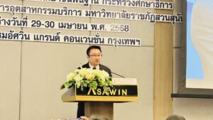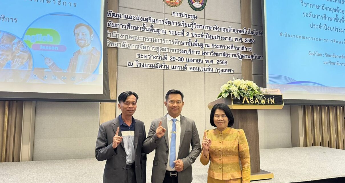 วันอังคารที่ 29 เมษายน 2568 ว่าที่ร้อยตรี สุรสิทธิ์ ถิตย์สมบูรณ์ ผู้อำนวยการสำนักงานเขตพื้นที่การศึกษาประถมศึกษากาฬสินธุ์ เขต 1 มอบหมายให้ ดร.นุกูล ทรงมงคลรัตน์ รองผู้อำนวยการสำนักงานเขตพื้นที่การศึกษาประถมศึกษากาฬสินธุ์ เขต 1 นายชุมพล ภูอ่อนศรี ผู้อำนวยการโรงเรียนพิพัฒน์ราษฎร์บำรุง และ ดร.รัตติยา ภูมิสายดร ศึกษานิเทศก์ เข้าร่วมการประชุมโครงการพัฒนาและส่งเสริมการจัดการเรียนรู้วิชาภาษาอังกฤษด้วยเทคโนโลยีดิจิทัล ระดับการศึกษาขั้นพื้นฐาน ระยะที่ 2 ประจำปีงบประมาณ พ.ศ. 2568 สำนักงานคณะกรรมการการศึกษาขั้นพื้นฐาน กระทรวงศึกษาธิการ จัดโดยวิทยาลัยการจัดการอุตสาหกรรมบริการ มหาวิทยาลัยราชภัฎสวนสุนันทา ณ โรงแรมอัศวิน แกรนด์ คอนเวนชั่น กรุงเทพมหานคร