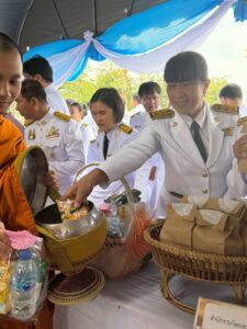 วันอังคารที่ 29 เมษายน 2568 เวลา 07.00 น. ว่าที่ร้อยตรีสุรสิทธิ์ ถิตย์สมบูรณ์ ผู้อำนวยการสำนักงานเขตพื้นที่การศึกษาประถมศึกษากาฬสินธุ์ เขต 1 มอบหมายให้ นางวชิรนุช พรหมภัทร์ รองผู้อำนวยการสำนักงานเขตพื้นที่การศึกษาประถมศึกษากาฬสินธุ์ เขต 1 นางสุพัตรา สาระโภค ผู้อำนวยการกลุ่มพัฒนาครูและบุคลากรทางการศึกษา เจ้าหน้าที่และบุคลากรกลุ่มบริหารงานการเงินและสินทรัพย์ ร่วมพิธีทำบุญตักบาตรถวายพระราชกุศล และพิธีถวายพระพรชัยมงคล เนื่องในวันคล้ายวันประสูติสมเด็จพระเจ้าลูกยาเธอ เจ้าฟ้าทีปังกรรัศมีโชติ มหาวชิโรตตมางกูร สิริวิบูลยราชกุมาร ณ หอประชุมศูนย์ราชการจังหวัดกาฬสินธุ์ อำเภอเมืองกาฬสินธุ์ จังหวัดกาฬสินธุ์