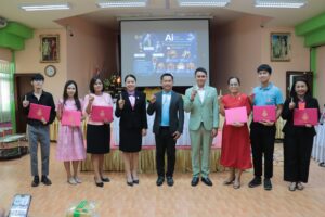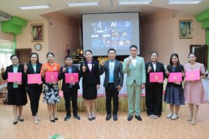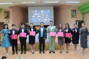 วันศุกร์ที่ 2 พฤษภาคม 2568 เวลา 15.30 น. ว่าที่ร้อยตรี สุรสิทธิ์ ถิตย์สมบูรณ์ ผู้อำนวยการสำนักงานเขตพื้นที่การศึกษาประถมศึกษากาฬสินธุ์ เขต 1 มอบหมายให้ ดร.นุกูล ทรงมงคลรัตน์ รองผู้อำนวยการสำนักงานเขตพื้นที่การศึกษาประถมศึกษากาฬสินธุ์ เขต 1 กล่าวปิดการอบรมเชิงปฏิบัติการภายใต้โครงการส่งเสริมและพัฒนาสมรรถนะการจัดการเรียนรู้ของครูผู้สอน เพื่อส่งเสริมสมรรถนะสำคัญและทักษะที่จำเป็นของผู้เรียน กิจกรรมที่ 10 ส่งเสริมและพัฒนาทักษะเทคโนโลยีดิจิทัลของครูและบุคลากรทางการศึกษา ในหัวข้อ “AI for Education : พัฒนางานครู สร้างสรรค์ห้องเรียนแห่งอนาคต” และมอบเกียรติบัตรให้กับผู้บริหารสถานศึกษา ข้าราชการครู และบุคลากรทางการศึกษาที่เข้าร่วมการอบรมในครั้งนี้ จำนวน 53 คน และคณะวิทยากร ณ ห้องประชุมมูลนิธิถาวรจิตตถาวโร-วงศ์มาลัย สำนักงานเขตพื้นที่การศึกษาประถมศึกษากาฬสินธุ์ เขต 1
