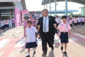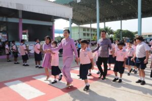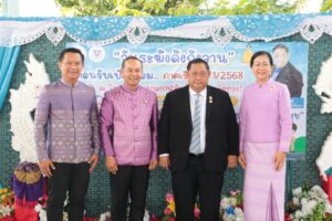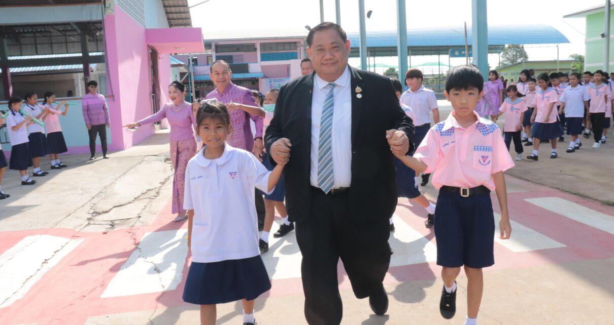 วันศุกร์ที่ 16 พฤษภาคม 2568 เวลา 08.00 น. ดร.ธีร์ ภวังคนันท์ รองเลขาธิการคณะกรรมการการศึกษาขั้นพื้นฐาน ให้เกียรติเป็นประธานเปิดกิจกรรมวันระฆังดังกังวาน สัญญาณการเปิดภาคเรียนการขับเคลื่อนนโยบาย เรียนดี มีความสุข และนโยบายโรงเรียน One คุณสุข สู่การปฏิบัติ และร่วมกิจกรรมหน้าเสาธงและมอบถุงปันสุขให้กับนักเรียน และร่วมกิจกรรมเพิ่มพื้นที่สีเขียวให้กับโรงเรียน ด้วยการปลูกต้นมะหาด ซึ่งเป็นไม้มงคลพระราชทานประจำจังหวัดกาฬสินธุ์ ณ โรงเรียนอนุบาลกาฬสินธุ์ (เตาไห-ไผ่ทอง) อำเภอเมืองกาฬสินธุ์ จังหวัดกาฬสินธุ์