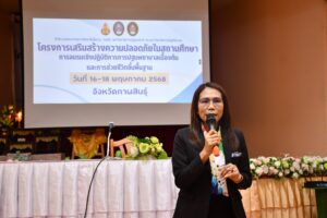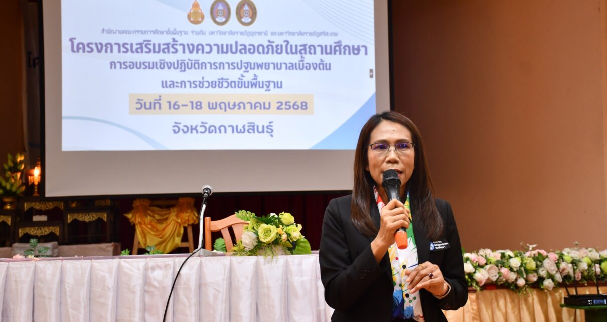วันอาทิตย์ที่ 18 พฤษภาคม 2568 เวลา 15.30 น. ว่าที่ร้อยตรีสุรสิทธิ์ ถิตย์สมบูรณ์ ผู้อำนวยการสำนักงานเขตพื้นที่การศึกษาประถมศึกษากาฬสินธุ์ เขต 1 มอบหมายให้นางสุธัญญา พันธุ์รักษ์ ศึกษานิเทศก์ชำนาญการพิเศษ กล่าวขอบคุณวิทยากรและผู้เข้ารับการอบรมเชิงปฏิบัติการ “โครงการเสริมสร้างความปลอดภัยในสถานศึกษา” (รุ่นที่ 3) ประกอบด้วย สำนักงานเขตพื้นที่การศึกษาประถมศึกษามหาสารคาม เขต 1-3 สำนักงานเขตพื้นที่การศึกษามัธยมศึกษากาฬสินธุ์ สำนักงานเขตพื้นที่การศึกษามัธยมศึกษามหาสารคาม และสำนักงานเขตพื้นที่การศึกษามัธยมศึกษาร้อยเอ็ด โดยสำนักงานคณะกรรมการการศึกษาขั้นพื้นฐานร่วมกับมหาวิทยาลัยราชภัฎอุดรธานี และมหาวิทยาลัยราชภัฎศรีสะเกษ ดำเนินการอบรมเพื่อสร้างความปลอดภัยในสถานศึกษา ณ ห้องประชุมมูลนิธิถาวรจิตตถาวโร-วงศ์มาลัย สำนักงานเขตพื้นที่การศึกษาประถมศึกษากาฬสินธุ์ เขต 1