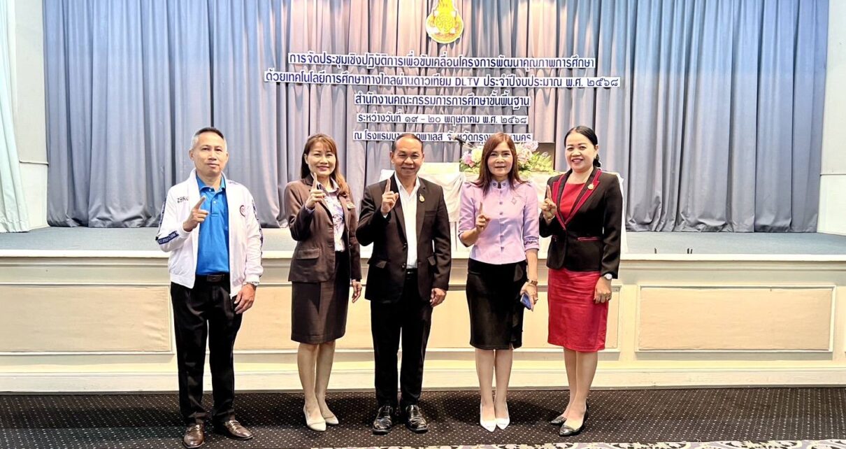 วันอังคารที่ 20 พฤษภาคม 2568 เวลา 09.00 น. ว่าที่ร้อยตรีสุรสิทธิ์ ถิตย์สมบูรณ์ ผู้อำนวยการสำนักงานเขตพื้นที่การศึกษาประถมศึกษากาฬสินธุ์ เขต 1 พร้อมด้วย นางมธุรดา ศรีเครือดง ศึกษานิเทศก์ชำนาญการพิเศษ เข้าร่วมประชุมเชิงปฏิบัติการเพื่อขับเคลื่อนโครงการพัฒนาคุณภาพการศึกษาด้วยเทคโนโลยีทางไกลผ่านดาวเทียม DLTV สังกัดสำนักงานคณะกรรมการการศึกษาขั้นพื้นฐาน ประจำปีงบประมาณ พ.ศ. 2568 ระหว่างวันที่ 19-20 พฤษภาคม 2568 ณ โรงแรมบางกอกพาเลส โดยมีผู้เข้าร่วมประชุมฯ จาก 171 เขตพื้นที่การศึกษา ประกอบด้วย ผู้อำนวยการสำนักงานเขตพื้นที่การศึกษา รองผู้อำนวยการสำนักงานเขตพื้นที่การศึกษา และศึกษานิเทศก์ จำนวนทั้งสิ้น 342 คน