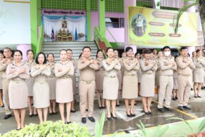 วันจันทร์ที่ 18 สิงหาคม 2568 เวลา 08.15 น. ว่าที่ร้อยตรี สุรสิทธิ์ ถิตย์สมบูรณ์ ผู้อำนวยการสำนักงานเขตพื้นที่การศึกษาประถมศึกษากาฬสินธุ์ เขต 1 มอบหมายให้ นางวชิรนุช พรหมภัทร์ และ ดร.นุกูล ทรงมงคลรัตน์ รองผู้อำนวยการสำนักงานเขตพื้นที่การศึกษาประถมศึกษากาฬสินธุ์ เขต 1 นำบุคลากรเข้าแถวเคารพธงชาติ สวดมนต์ไหว้พระ และกล่าวคำปฏิญญาสำนักงานเขตพื้นที่การศึกษาสุจริต สนองนโยบายระยะเร่งด่วน (Quick Win) ประจำปีงบประมาณ พ.ศ. 2568-2569 ด้านการลดภาระครูและบุคลากรทางการศึกษา ข้อ 5 สร้างความตระหนักในการป้องกันการทุจริต