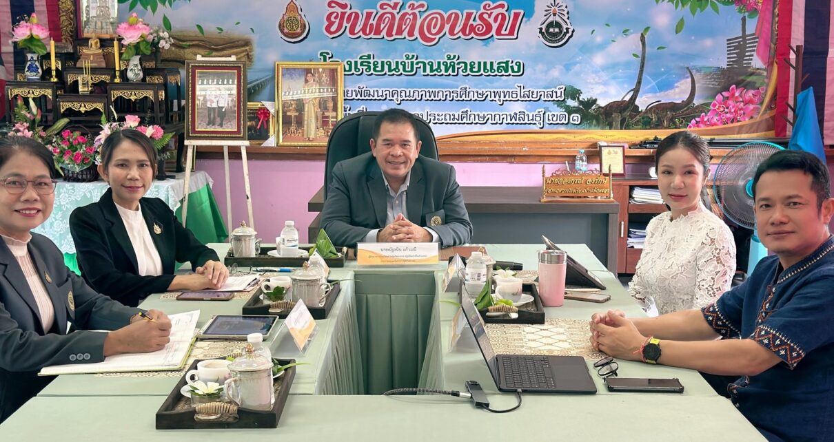 วันพฤหัสบดีที่ 21 สิงหาคม 2568 ว่าที่ร้อยตรี สุรสิทธิ์ ถิตย์สมบูรณ์ ผู้อำนวยการสำนักงานเขตพื้นที่การศึกษาประถมศึกษากาฬสินธุ์ เขต 1 มอบหมายให้ นายณัฐธนิน แก้วมณี ผอ.ร.ร.ห้วยตูมวิทยาคาร ประธานกลุ่มเครือข่ายฯ พุทธไสยาสน์ พร้อมด้วย ดร.ธรัชพร จันทรัตน์ คณะกรรมการ ก.ต.ป.น. นายอลงกรณ์ จงรักษ์ ผอ.ร.ร.บ้านห้วยแสง รองประธานกลุ่มเครือข่ายฯ นางสรัญญา ภารประดับ ผอ.ร.ร.แก่งนาขามสามัคคี เลขานุการกลุ่มเครือข่ายฯ และนางสุธัญญา พันธุ์รักษ์ ศึกษานิเทศก์ ปฏิบัติหน้าที่คณะนิเทศฯ การบริหารงาน 4 ด้าน (ด้านวิชาการ ด้านบุคลากร ด้านงบประมาณ และด้านบริหารทั่วไป) และการขับเคลื่อนนโยบายเรียนดี มีความสุข และ One คุณสุข ของสถานศึกษาในสังกัด พร้อมทั้ง ติดตามการจัดการเรียนการสอน DLTV โดยใช้ชุดกิจกรรม (ใบงาน และใบความรู้) ของโรงเรียนขนาดเล็ก ณ โรงเรียนบ้านห้วยแสง และโรงเรียนหนองหัวช้าง กลุ่มเครือข่ายฯ พุทธไสยาสน์ ซึ่งทางโรงเรียนได้นำเสนอผลการดำเนินงานครอบคลุมประเด็นการนิเทศ ในครั้งนี้