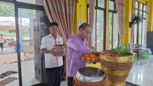 วันพุธที่ 27 สิงหาคม 2568 เวลา 07.00 น. ว่าที่ร้อยตรี สุรสิทธิ์ ถิตย์สมบูรณ์ ผู้อำนวยการสำนักงานเขตพื้นที่การศึกษาประถมศึกษากาฬสินธุ์ เขต 1 พร้อมด้วย ดร.รัตติยา ภูมิสายดร ศึกษานิเทศก์ประจำกลุ่มเครือข่ายพัฒนาคุณภาพการศึกษาเมืองโปงลาง คณะผู้บริหารในกลุ่มเครือข่ายฯทุกท่าน ผู้นำชุมชน ผู้ปกครองนักเรียนในชุมชน ร่วมกิจกรรมทำบุญตักบาตร ถวายภัตตาหารเช้าพระภิกษุสงฆ์ ณ วัดป่าชัยมงคล อำเภอเมือง จังหวัดกาฬสินธุ์ และร่วมรับประทานอาหารเช้า พบปะ สนทนา กับผู้นำชุมชน ผู้ปกครอง และประชาชนที่มาร่วมกิจกรรม โดยการจัดกิจกรรมในครั้งนี้ มีวัตถุประสงค์ เพื่อสร้างความสัมพันธ์อันดีกับชนชุม (บ้าน วัด โรงเรียน)