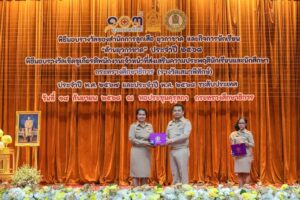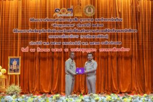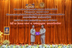 วันที่ 18 กันยายน 2568 ว่าที่ร้อยตรีสุรสิทธิ์ ถิตย์สมบูรณ์ ผอ.สพป.กาฬสินธุ์ เขต 1 มอบหมายให้ นางวชิรนุช พรหมภัทร์ รองผู้อำนวยการสำนักงานเขตพื้นที่การศึกษาประถมศึกษากาฬสินธุ์ เขต 1 พร้อมด้วย นายนิกร สันประเภท ผู้อำนวยการโรงเรียนถ้ำปลาวิทยายน เข้าร่วมพิธีรับมอบรางวัลเชิดชูเกียรติพนักงานเจ้าหน้าที่ส่งเสริมความประพฤตินักเรียนและนักศึกษา กระทรวงศึกษาธิการ (รางวัลเสมาพิทักษ์) ประจำปี พ.ศ. 2567 ระดับประเทศ และนางสุจิตราภรณ์ หันไชยเนาว์ ครูโรงเรียนท่ากลางแจ้งจมวิทยา เข้าร่วมพิธีรับมอบรางวัลเชิดชูเกียรติพนักงานเจ้าหน้าที่ส่งเสริมความประพฤตินักเรียนและนักศึกษา กระทรวงศึกษาธิการ (รางวัลเสมาพิทักษ์) ประจำปี พ.ศ. 2568 ณ หอประชุมคุรุสภา กระทรวงศึกษาธิการ กรุงเทพมหานคร โดยมี ดร.สุเทพ แก่งสันเทียะ ปลัดกระทรวงศึกษาธิการ เป็นประธานในพิธีมอบรางวัล และนายวรัท พฤกษาทวีกุล รองปลัดกระทรวงศึกษาธิการ เป็นผู้มอบรางวัล เพื่อยกย่องและเชิดชูเกียรติผู้บริหารและบุคลากรที่ปฏิบัติหน้าที่ส่งเสริมความประพฤตินักเรียนและนักศึกษา ซึ่งมีผลงานดีเด่นและพัฒนางานให้มีมาตรฐาน