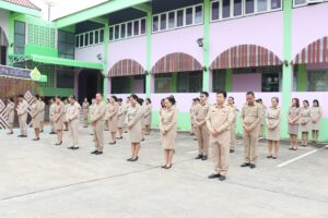 วันจันทร์ที่ 27 ตุลาคม 2568 เวลา 08.10 น. ว่าที่ร้อยตรี สุรสิทธิ์ ถิตย์สมบูรณ์ ผู้อำนวยการสำนักงานเขตพื้นที่การศึกษาประถมศึกษากาฬสินธุ์ เขต 1 นำบุคลากรเข้าแถวเคารพธงชาติ สวดมนต์ไหว้พระ และกล่าวคำปฏิญญาสำนักงานเขตพื้นที่การศึกษาสุจริต สนองนโยบายระยะเร่งด่วน (Quick Win) ประจำปีงบประมาณ พ.ศ. 2568-2569 ด้านการลดภาระครูและบุคลากรทางการศึกษา ข้อ 5 สร้างความตระหนักในการป้องกันการทุจริต และร่วมแสดงความยินดีกับสำนักงานเขตพื้นที่การศึกษาประถมศึกษากาฬสินธุ์ เขต 1 เนื่องจากได้รับโล่รางวัล