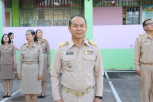 วันจันทร์ที่ 10 พฤศจิกายน 2568 เวลา 08.15 น. ว่าที่ร้อยตรี สุรสิทธิ์ ถิตย์สมบูรณ์ ผู้อำนวยการสำนักงานเขตพื้นที่การศึกษาประถมศึกษากาฬสินธุ์ เขต 1 นำบุคลากรเข้าแถวเคารพธงชาติ สวดมนต์ไหว้พระ และกล่าวคำปฏิญญาสำนักงานเขตพื้นที่การศึกษาสุจริต สนองนโยบายระยะเร่งด่วน (Quick Win) ประจำปีงบประมาณ พ.ศ. 2568-2569 ด้านการลดภาระครูและบุคลากรทางการศึกษา ข้อ 5 สร้างความตระหนักในการป้องกันการทุจริต และมอบริบบิ้นสีดำไว้อาลัยให้แก่บุคลากร เพื่อติดแสดงความไว้อาลัยแด่สมเด็จพระนางเจ้าสิริกิติ์ พระบรมราชินีนาถ พระบรมราชชนนีพันปีหลวง