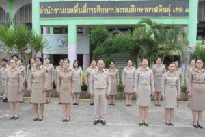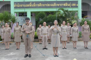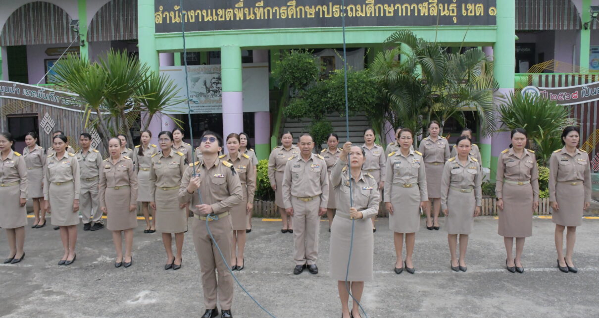 วันจันทร์ที่ 17 พฤศจิกายน 2568 เวลา 08.15 น. ว่าที่ร้อยตรี สุรสิทธิ์ ถิตย์สมบูรณ์ ผู้อำนวยการสำนักงานเขตพื้นที่การศึกษาประถมศึกษากาฬสินธุ์ เขต 1 นำบุคลากรสพป.กาฬสินธุ์ เขต 1 และคณะผู้เข้ารับการพัฒนาข้าราชการครูและบุคลากรทางการศึกษา ก่อนแต่งตั้งให้ดำรงตำแหน่งผู้บริหารสถานศึกษา ในสังกัดสำนักงานคณะกรรมการการศึกษาขั้นพื้นฐาน ประจำปีงบประมาณ พ.ศ. 2569 ระยะที่ 2 และระยะที่ 3 ประจำเขตตรวจราชการที่ 12 เข้าแถวเคารพธงชาติ สวดมนต์ไหว้พระ และกล่าวคำปฏิญญาสำนักงานเขตพื้นที่การศึกษาสุจริต สนองนโยบายระยะเร่งด่วน (Quick Win) ประจำปีงบประมาณ พ.ศ. 2568-2569 ด้านการลดภาระครูและบุคลากรทางการศึกษา ข้อ 5 สร้างความตระหนักในการป้องกันการทุจริต