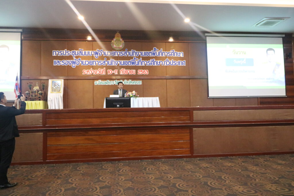 วันศุกร์ ที่ 11 กันยายน 2563 นายยงยุทธ พรหมแก้ว ผู้อำนวยการสำนักงานเขตพื้นที่การศึกษาประถมศึกษากาฬสินธุ์ เขต 1 และนางสาวกมลวรรณ ทิพยเนตร รองผู้อำนวยการสำนักงานเขตพื้นที่การศึกษาประถมศึกษากาฬสินธุ์ เขต 1 ร่วมประชุมสัมมนาผู้อำนวยการสำนักงานเขตพื้นที่การศึกษาและรองผู้อำนวยการสำนักงานเขตพื้นที่การศึกษาทั่วประเทศ ระหว่างวันที่ 10-11 กันยายน 2563 ณ โรงแรมอิงธาร รีสอร์ทจังหวัดนครนายก โดยมี ดร.กวินทร์เกียรติ นนธ์พละ รองเลขาธิการคณะกรรมการการศึกษาขั้นพื้นฐาน เป็นวิทยากรบรรยายพิเศษ